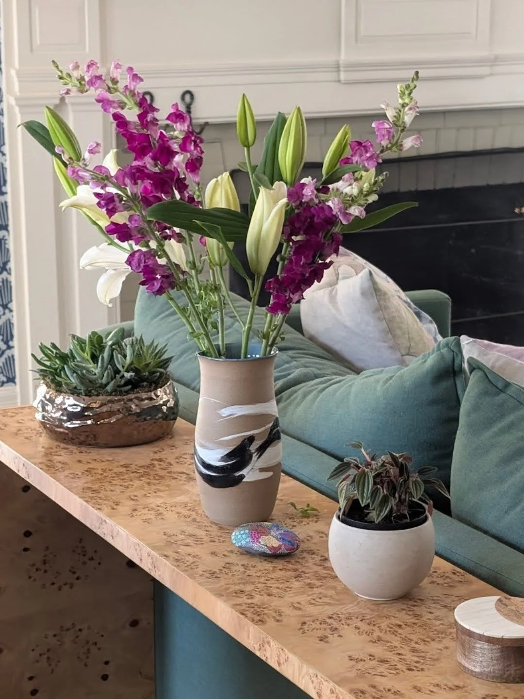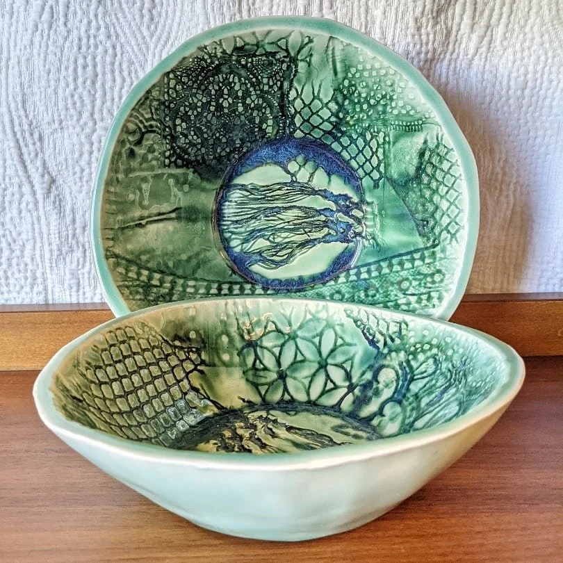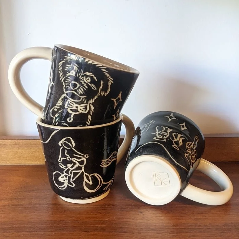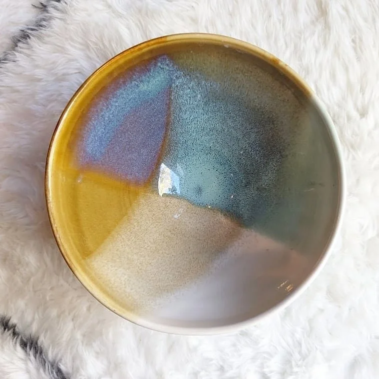 In the studio, I make work that blends clean forms with rich color, subtle movement, and a sense of play. Working in a variety of light and dark stoneware clay bodies and colored porcelain, I explore wheel throwing, handbuilding, mason stains, and the occasional touch of gold luster to bring quiet vibrancy to everyday objects.